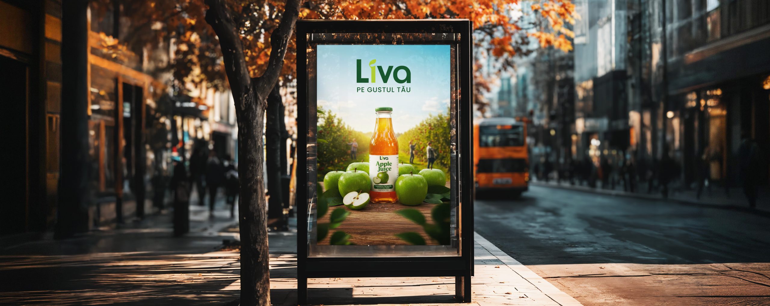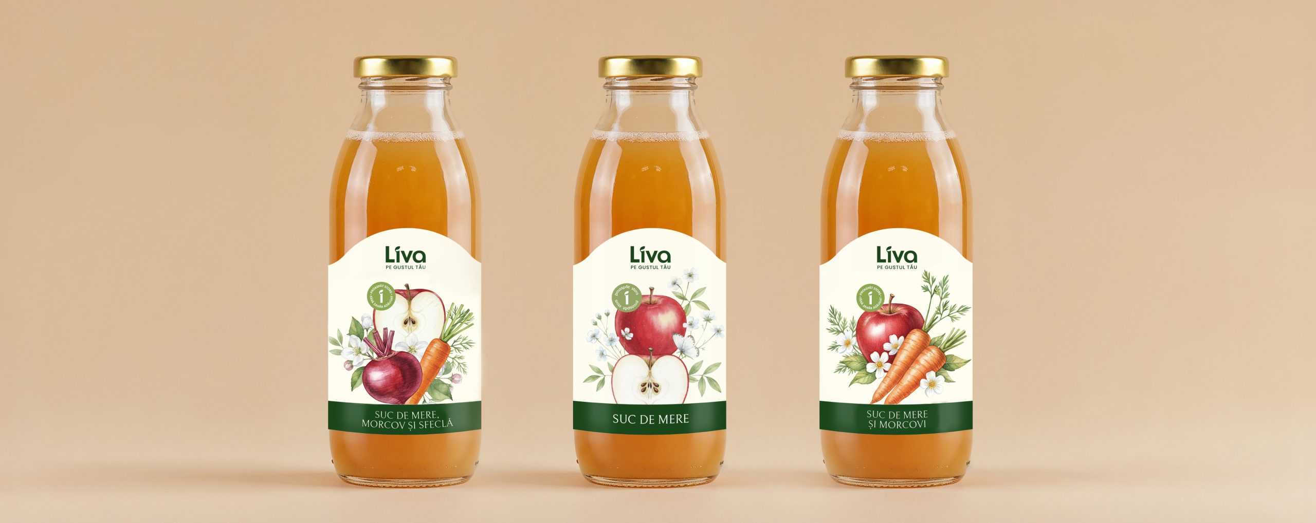 Название LIVA короткое, запоминающееся и легко произносимое. Оно ассоциируется с жизненной энергией и прямой связью с садом, формируя прочную основу для развития бренда в категории натуральных соков и свежих напитков.
